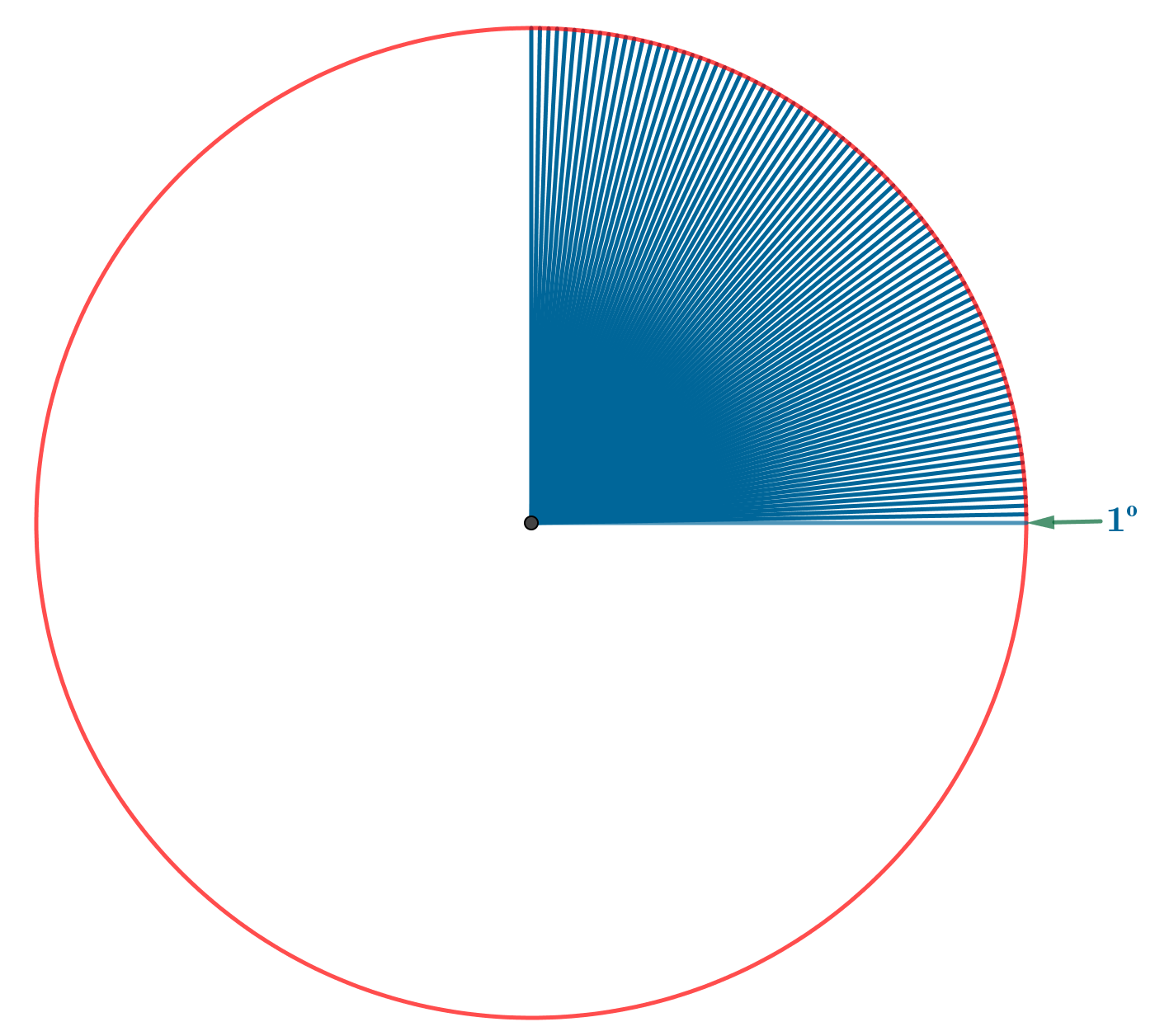 Un grado sexagesimal es el medida de un ángulo central de una circunferencia cuyo arco de circunferencia correspondiente es la 1/360 parte de la longitud de la circunferencia.