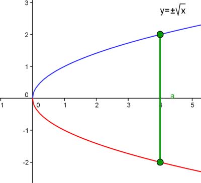 Aquí tenéis dos ejemplos. El de la izquierda representa una función porque para cada valor del conjunto inicial, eje X, le corresponde un único valor del conjunto final, eje Y. El de la derecha no representa una función porque para hay valores (en este ejemplo todos) que tienen dos imágenes, por ejemplo, las imágenes de 4 son 2 y menos 2.