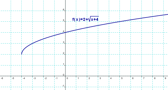 Dibuja la gráfica de la función: $y=2+\sqrt{x+4}$