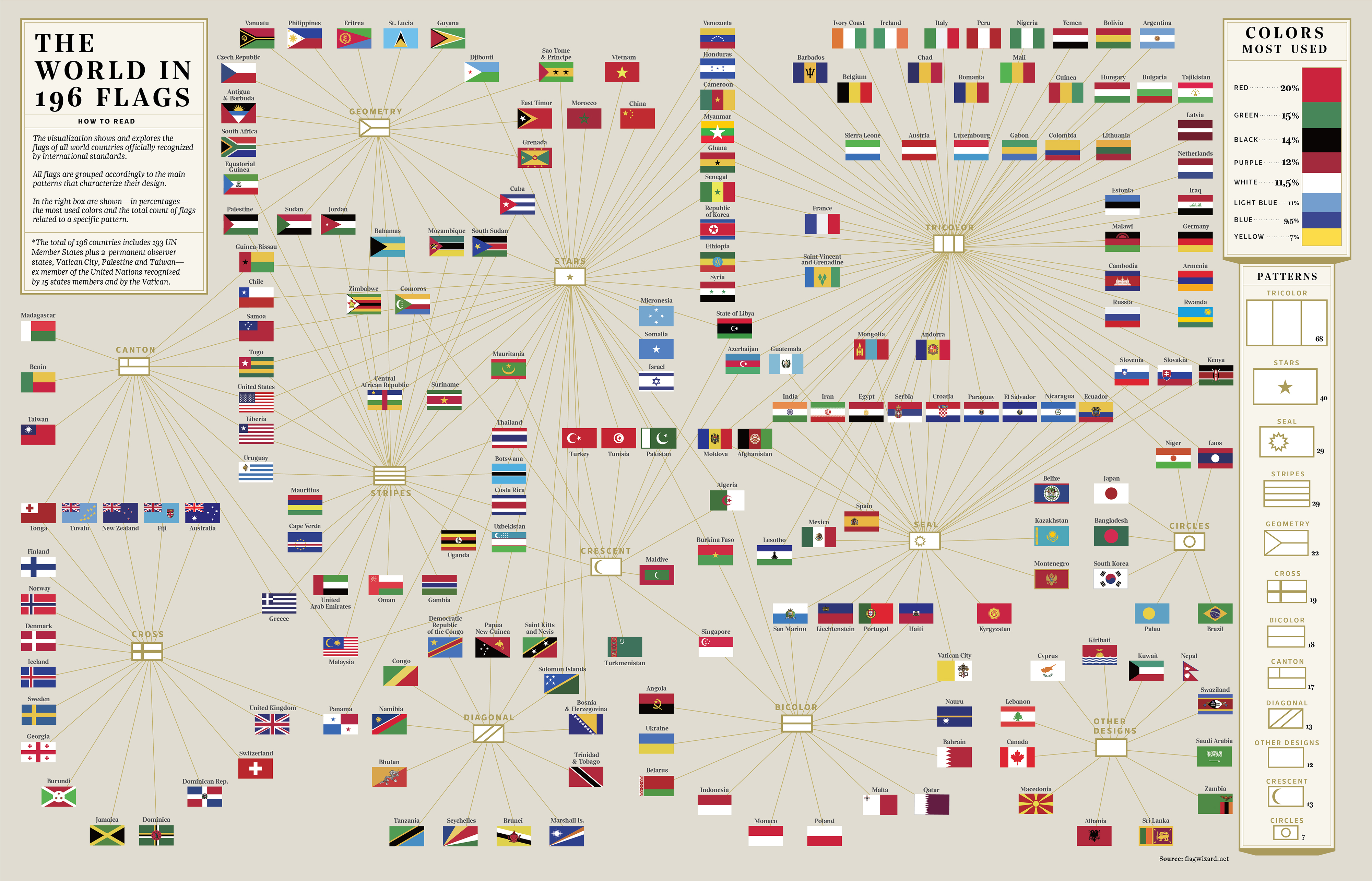 ¿Cuántas banderas tienen cantones, lunas crecientes o estrellas, diagonales o cruces?
